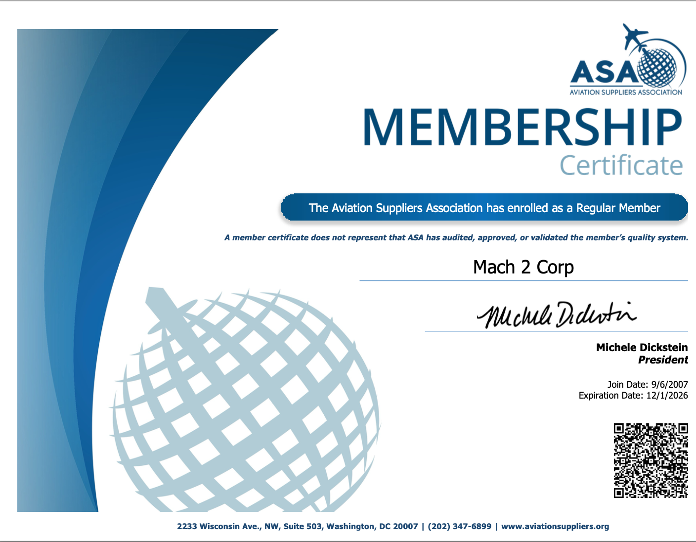 Our dedication to exceptional customer service extends to airlines, MROs, and various service providers. Leveraging the Quantum inventory control system, we ensure the highest quality materials at competitive prices. Proudly a member of the Aviation Suppliers Association (ASA), MACH 2 Corp adheres to industry-standard quality requirements, securing multiple Airline Quality Audit approvals and continually expanding our customer base and industry accreditations.
